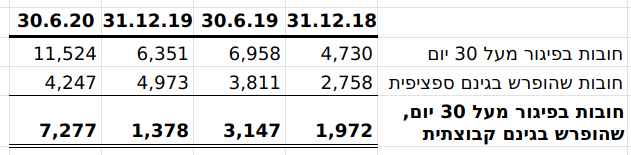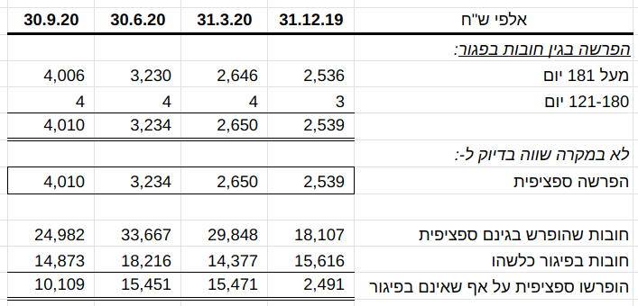 נשים לב להפרש בין סך החובות בפיגור לבין סך החובות שהופרש בגינם ספציפית...