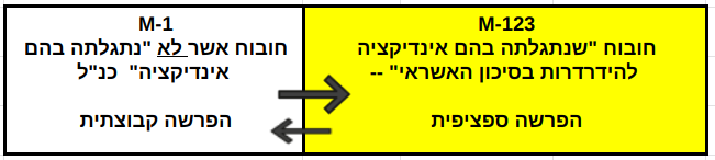 על כן, אקרא לקטוגריית החובות שבגינה חושבה הפרשה ספציפית בשם "שלב M-123" ולקטגוריית החובות שבגינה חושבה הפרשה קבוצתית" בשם "שלב M-1". הנה הקשר בין שלושת שלבי ה-IFRS לבין שני שלבי מלרן-מיכמן: