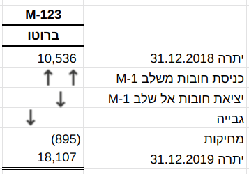 מה שאנו יודעים משתי הטבלאות הנ"ל על התנועה בחשובון הברוטו של שלב M-123 בשנת 2019 הוא כדלקמן: