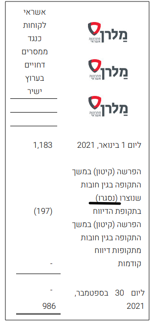 קטעים נבחרים וכותרות מדוח שנחתם ביום 1.2.2022, המתייחס לדוחות תקופתיים שהאחרון בהם הוא זה של רבעון שלישי, 2021. הדוח המלא כאן.