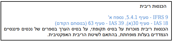 סיכום: קו הזמן בביאור המדיניות החשבונאית ובביאור "מכשירים פינננסיים"