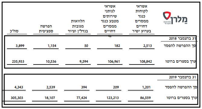 להלן אסביר את השגיאה המשמעותית. לצורך כך נביט תחילה בנתוני הברוטו שמלרן נתנה להם גילוי ב"טבלאותת הפילוח" ליום 31.12.18 וליום 31.12.2019: