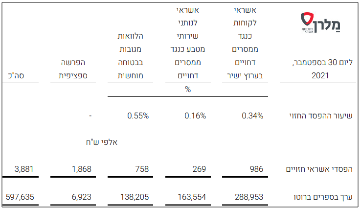 חלף פילוח שלושת השלבים שגילויו מבוקש ב-IFRS, מלרן (מאז תשקיף נובמבר 2019) ומיכמן (מאז תשקיף פברואר 2021) מפלחות את יתרת הברוטו של התיק ואת יתרת ההפרשה להפסדי אשראי בפורמט, שבו עושה שימוש פנינסולה מאז 2018 (לאור הנסיבות, אני מניח כי זכויות היוצרים למתכונת הדיווח הזו היא של פנינסולה ו/או של רואי החשבון המבקרים שלה, PWC):