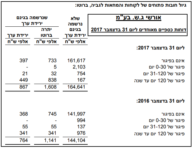 מי יכול להסביר את הסתירה לכאורה? אני מאמין יותר לנתונים שבפרק תיאור עסקי החברה, כי בקרב אח"ביות התל אביביות האחרות, חובות בפיגור מעל שנה הם עניין שבשיגרה ואורשי לא כותבת מפורשות כי היא מוחקת חובות לאחר 365 ימי פיגור.