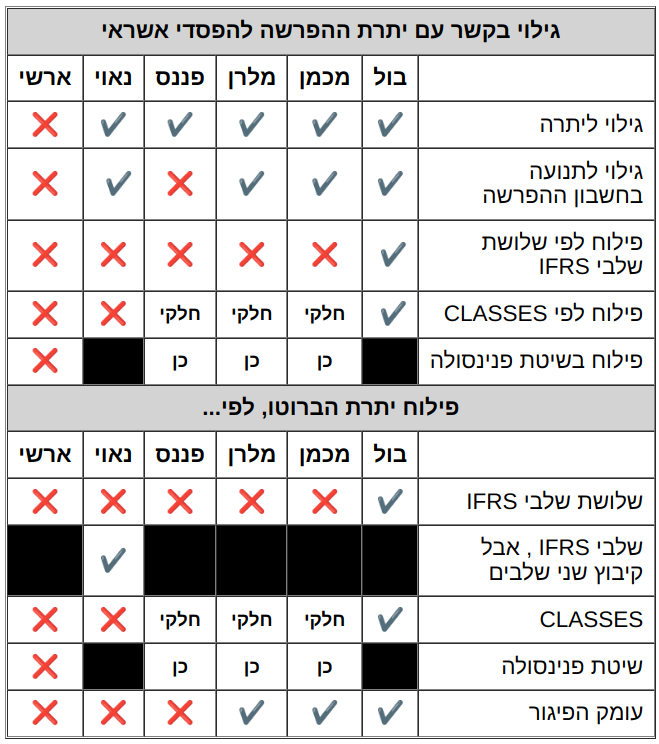 - אי פילוח ליתרת ההפרשה לפי שלושת שלבי ה-IFRS ולפי CLASSES