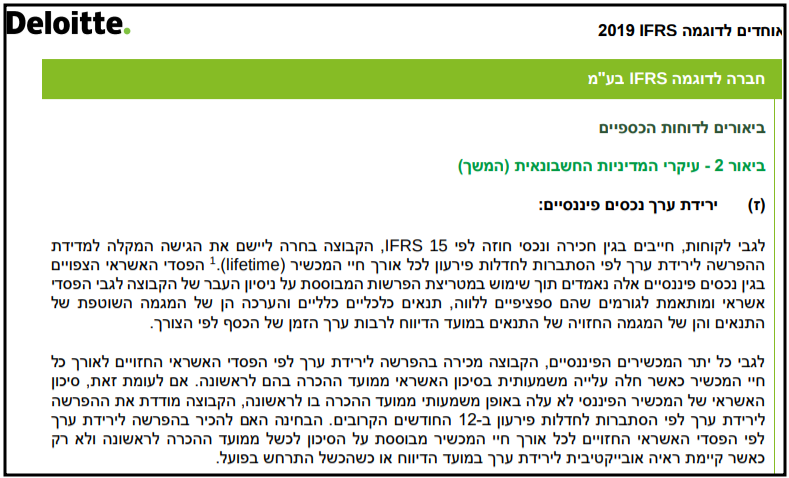 הקטע המקורי בדוחות לדוגמה של דלויט נראה כך (ושימו לב להערת השוליים):