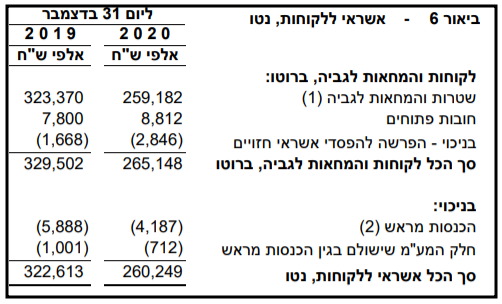בביאור 6 בדוחות שנת 2020 ניתן גילוי ליתרת "הפרשה להפסדי אשראי חזויים": 2,846 ו-1,668 אלפי ש"ח ליום 31.12.2020 ו-31.12.2019, בהתאמה (ראו ת' 9 למטה).