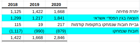כך מציגה אורשי את התנועה בחשבון ההפרשה בדוח 2020:
