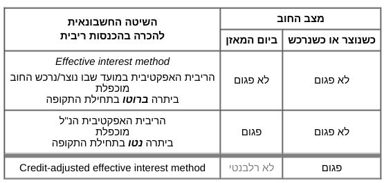 אלא שנוסח המדיניות הזו כללי מדי עבור חברות אשראי, שלדעתי מצופה מהן ליידע את קורא הדוחות כי שיטת הריבית האפקטיבית מיושמת באופן שונה עבור חובות פגומים מאשר עבור חובות שאינם פגומים, כמוסבר כאן בפרק 1: