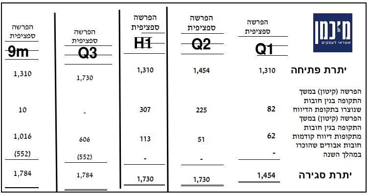 ולכן הכותרת המוצמדת לסכומים האלה — "הפרשה (קיטון) במשך התקופה בגין חובות שנוצרו בתקופת הדיווח" — אינה מתארת את הסכומים האלה.