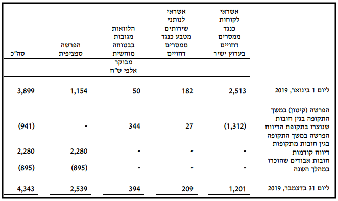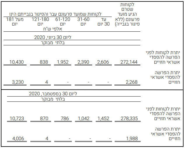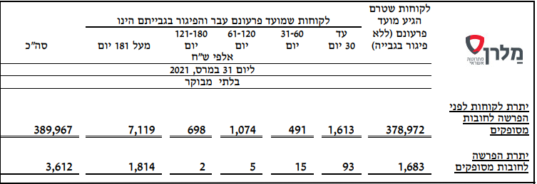 נשים לב להפרש בין סך החובות בפיגור לבין סך החובות שהופרש בגינם ספציפית...