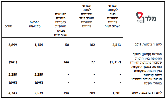 טבלת התנועה בחשבון ההפרשה בדוח 2019 של מלרן נראתה כמו טבלה טיפוסית בחברה מסחרית או תעשייתית: