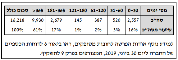 בטקסט של מלרן לעיל, מתחת לטבלת נתוני הפיגור, כתוב כי מי שמעוניין לקבל "מידע נוסף אודות הפרשה לחובות מסופקים" יואיל בטובו לפנות ל"ביאור 6 לדוחות הכספיים של החברה ליום 30 ביוני, 2019, המצורפים בפרק 9 לתשקיף". אני הייתי מעוניין ביתרת ליום 30.6.2019 כדי להציבה במכנה של היחס.