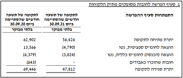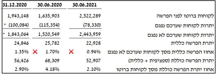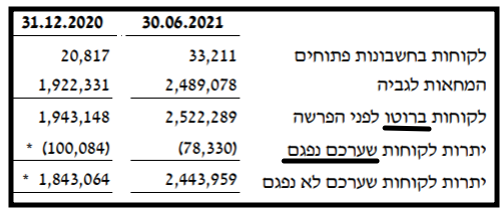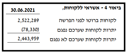 הביטו בשורה "יתרת לקוחות שערכם נפגם" בטבלה הבאה (ביאור 4ג בדוח 2Q21):