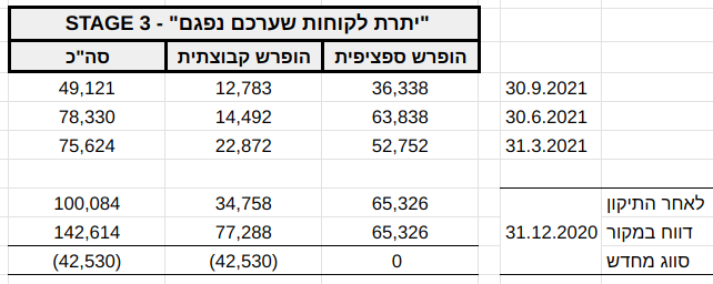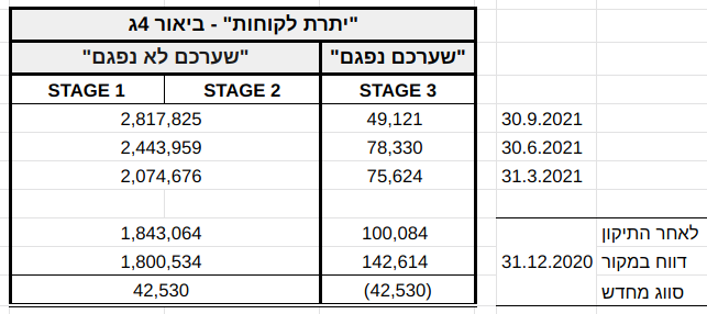 גם טבלת הפילוח בדוח הדירקטוריון — שהפורמט שלה והכותרות שלה נותרו בדיוק כפי שהיו לפני הבדיקה — אינה מפלחת את "יתרת לקוחות שערכם לא נפגם" ליתרות STAGE 2 ו-STAGE 1.
