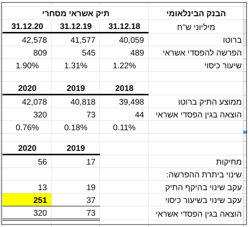 מגוון המספרים בדוח רבעון שלישי לשנת 2021, הקשורים בצורה זו או אחרת להפרשה להפסדי אשראי עשיר מאד בהשוואה למצוי בדוחות התקופתיים של חברות אח"ב תל אביביות אחרות.