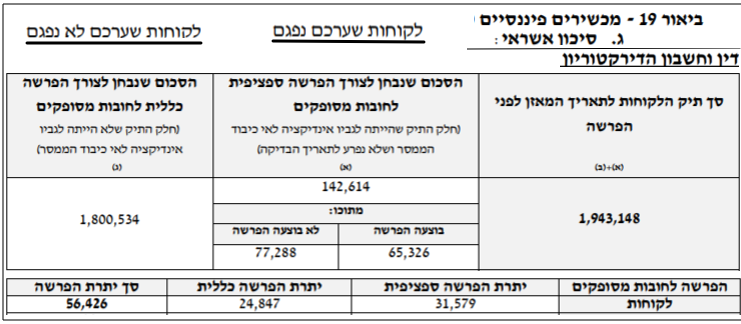 הפלח הראשון בטבלה, 142,614 אלפי ש"ח, הוא בדיוק הפלח המובא בביאור 19ג תחת הכותרת "לקוחות שערכם נפגם", אבל כאן, בדוח הדירקטוריון, יתרה זו מקבלת כותרת אחרת: